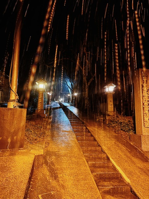 そして、まるで合図のように、新年が最初の挨拶を届けてくれました。真夜中のお寺からの帰り道、地元の神社の静かな境内の前を通りかかった時、それが始まりました:初雪です。雪片が石灯籠の灯りの中で舞い、世界をほんのり純白で覆いました。その静かな、深夜過ぎの瞬間、それは単なる天気というより、優しい、静かな祝福—自然そのものが清らかな白紙と純粋な喜びの火花を差し出してくれているようでした。