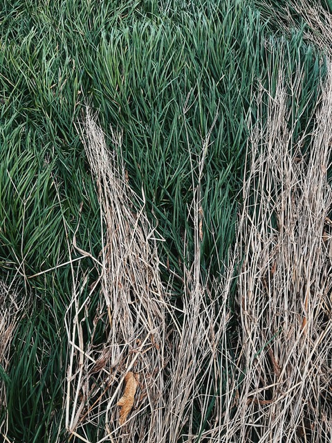 d’herbe verte luttant à travers le jaune,échevelée par ce même vent. Dans